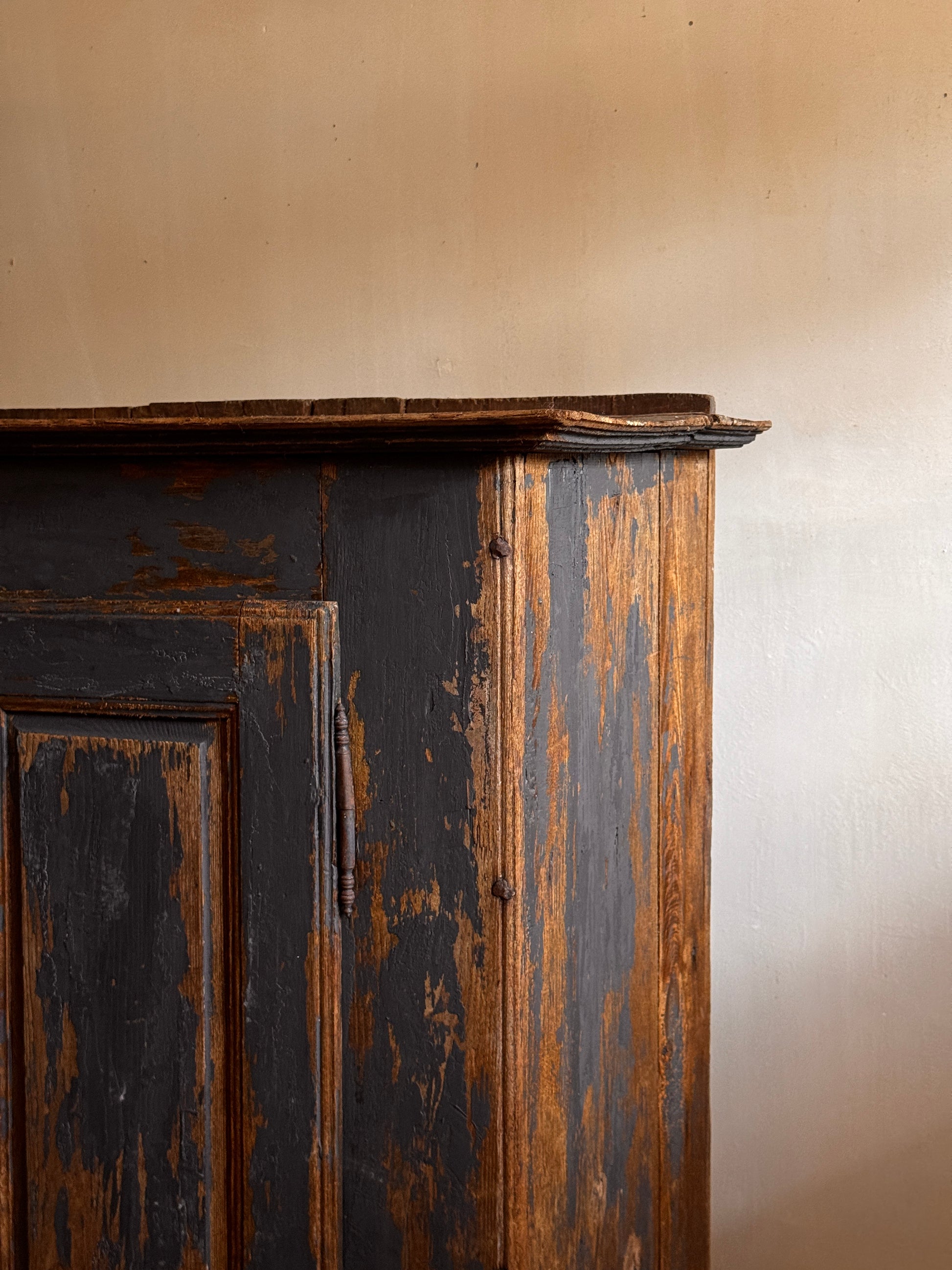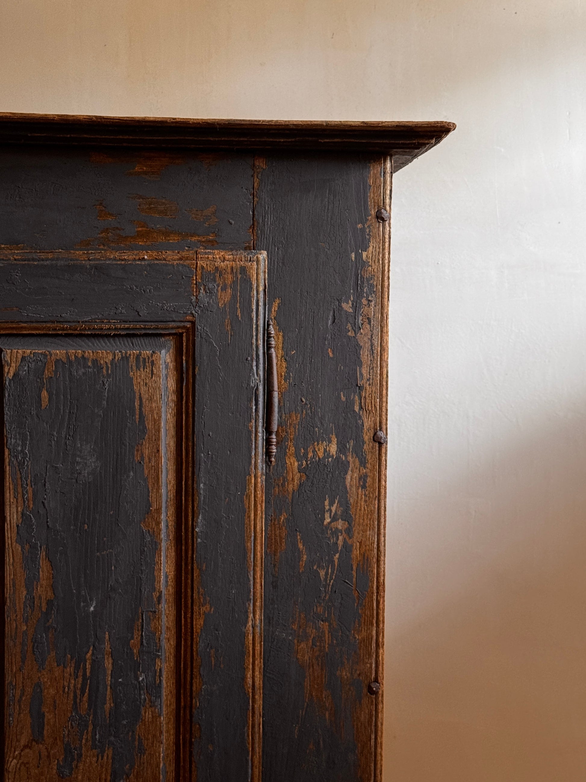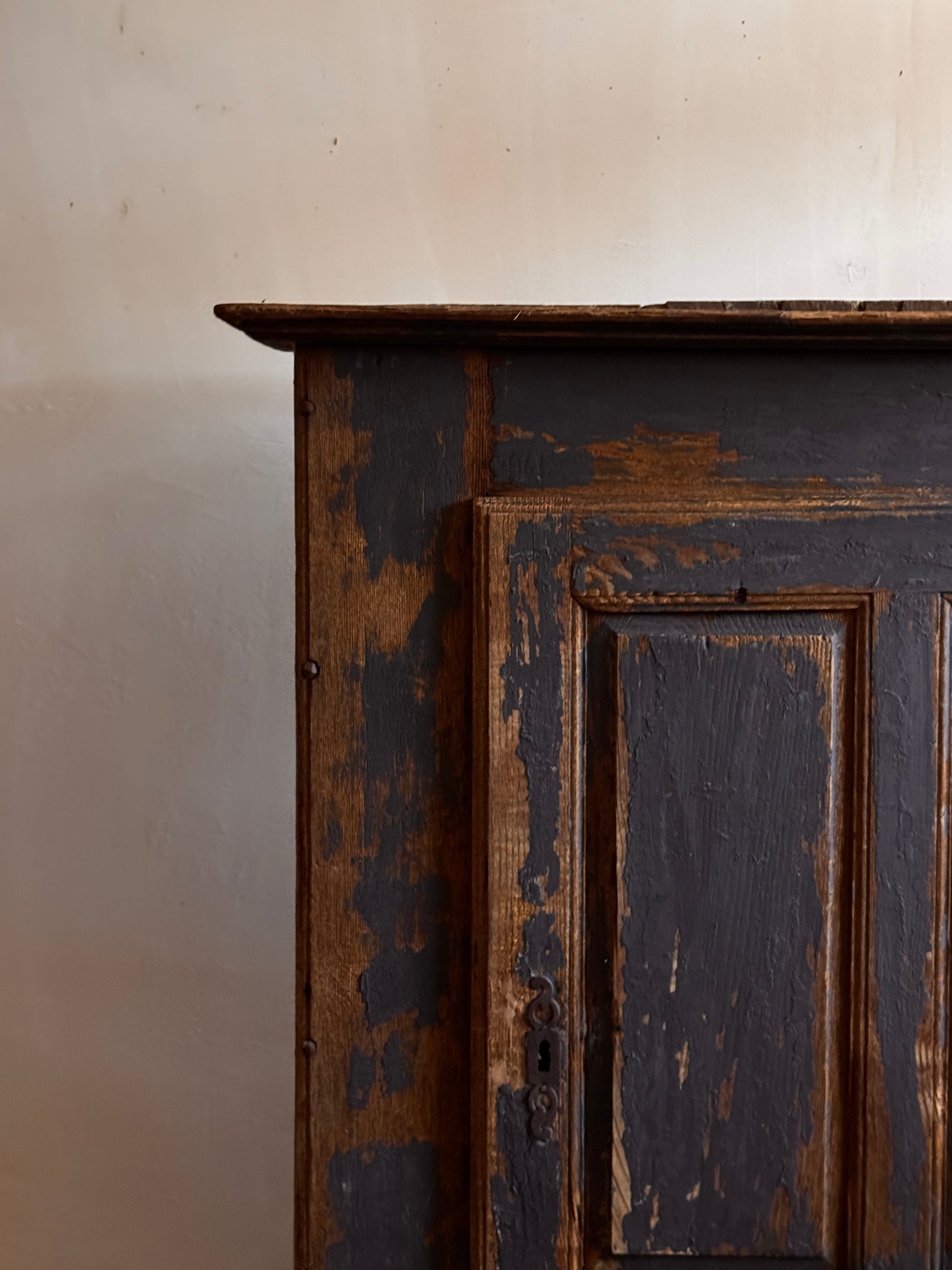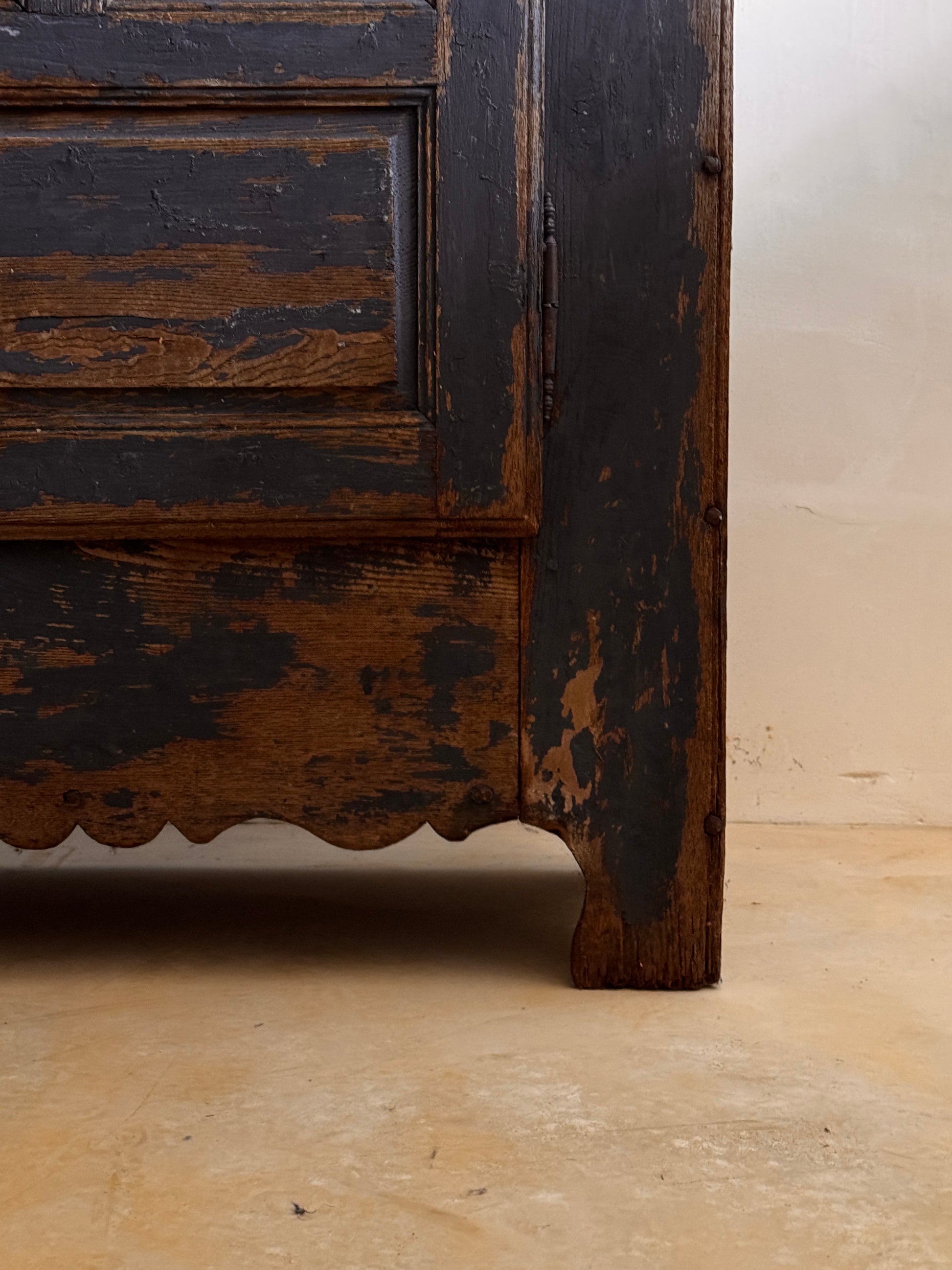 An imposing 18th-century Baroque armoire, crafted from solid oak with a beautiful natural patina that highlights the wood's elegance. Originating in Central Europe, this piece combines architectural strength and rustic elegance.