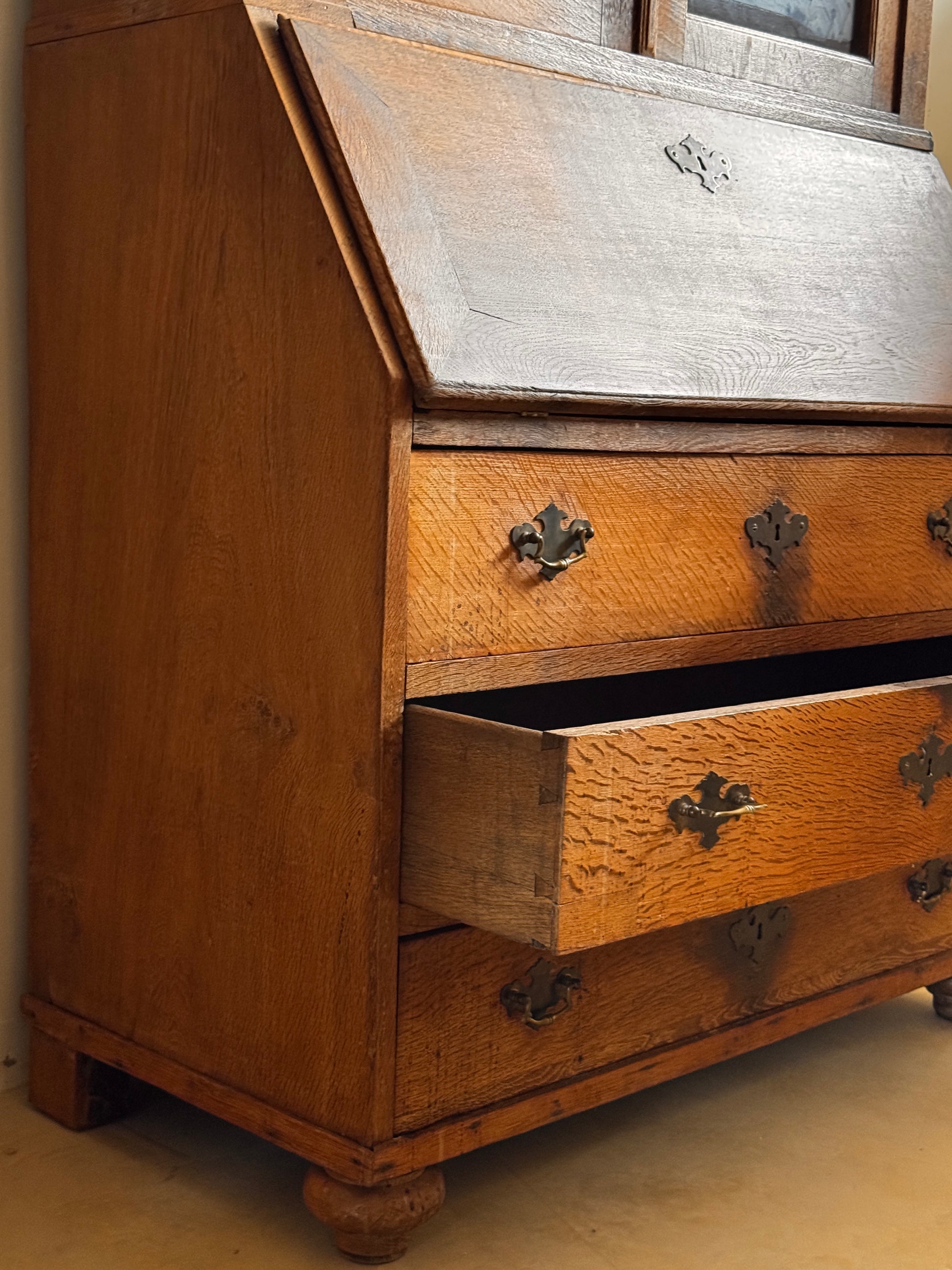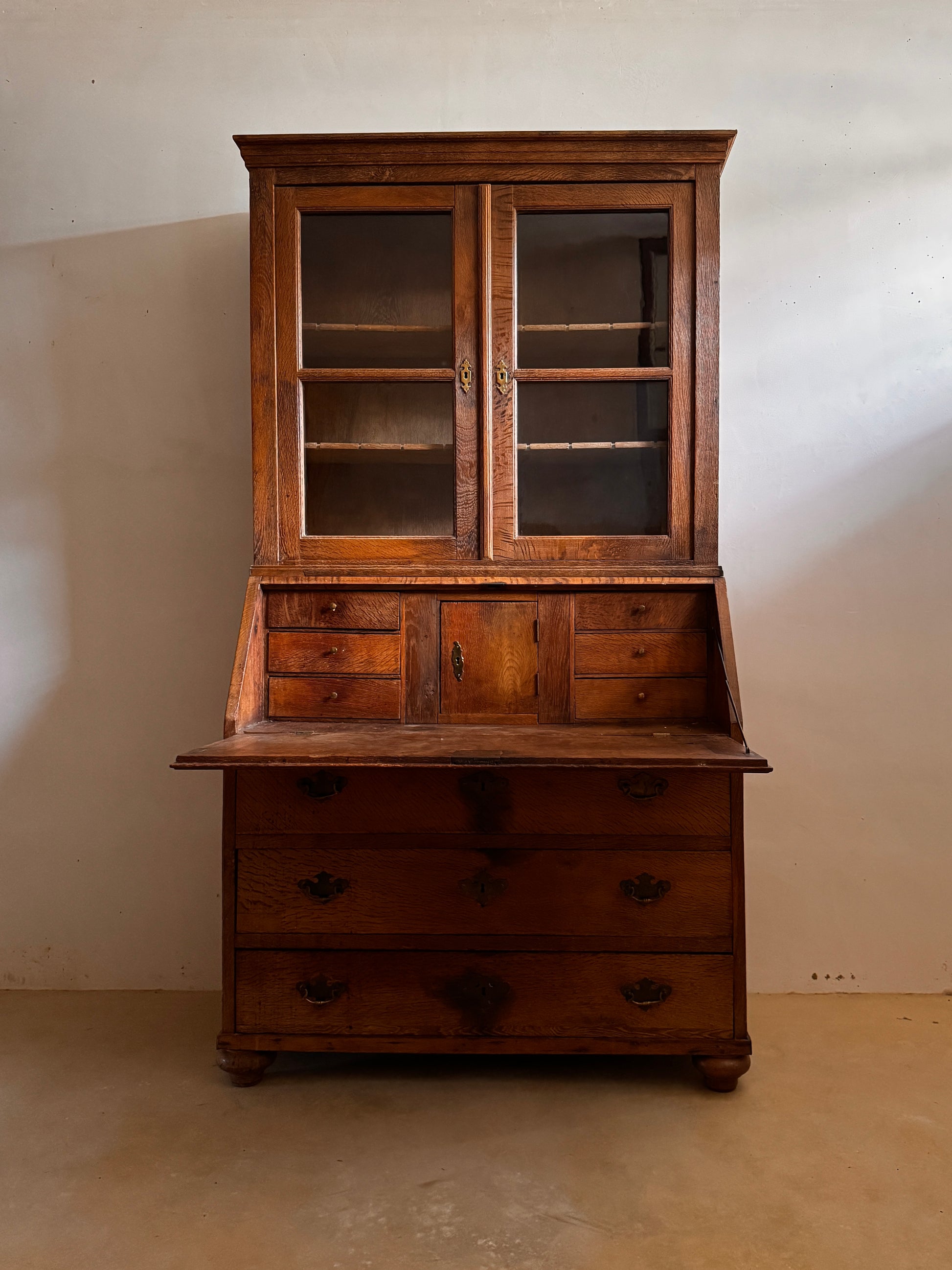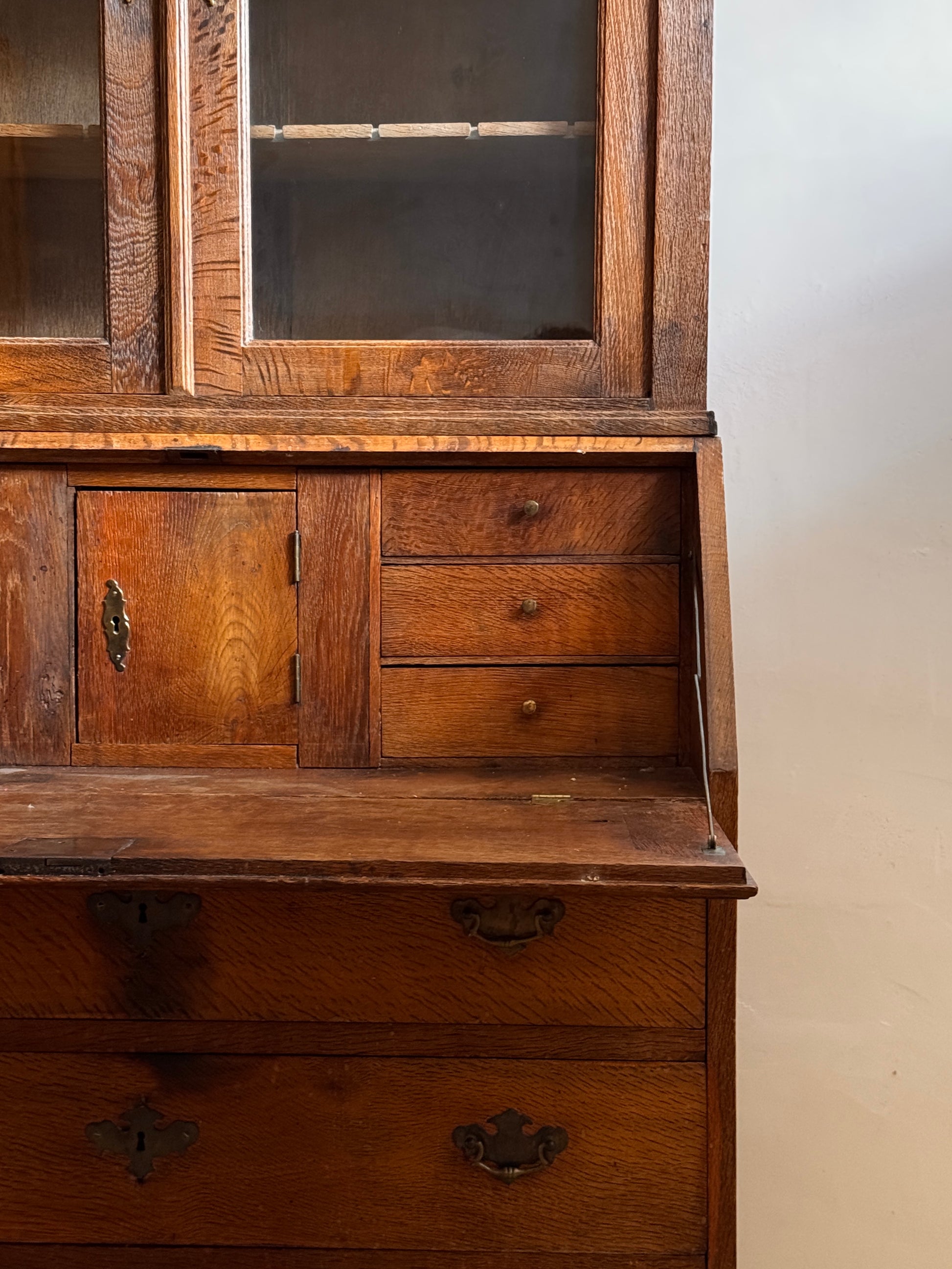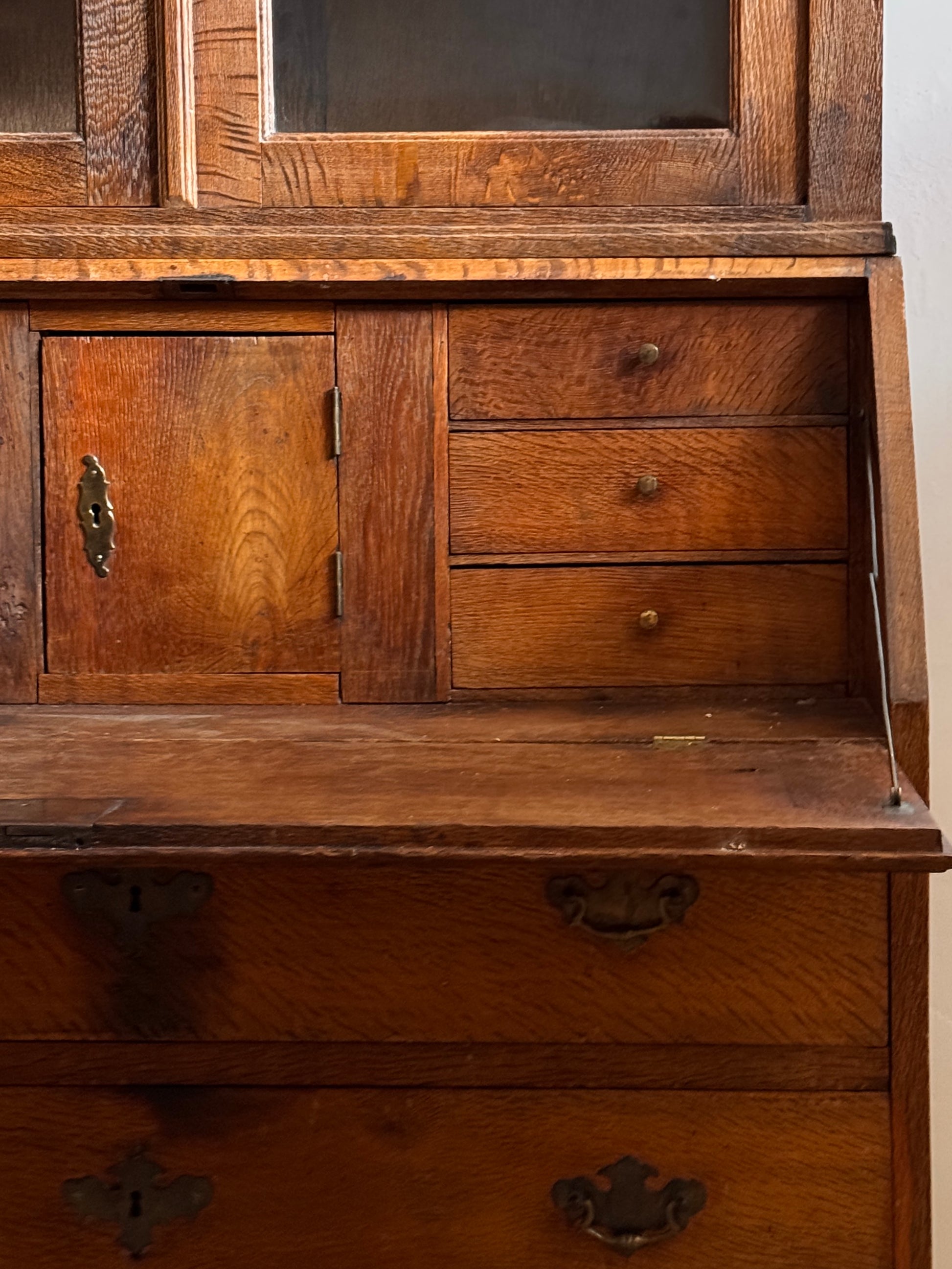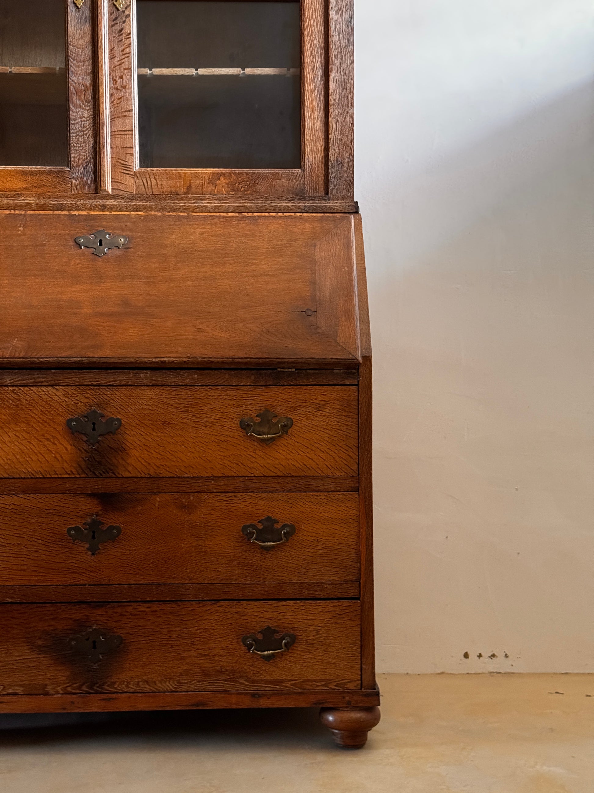 Oak secretary with upper display case, 19th century