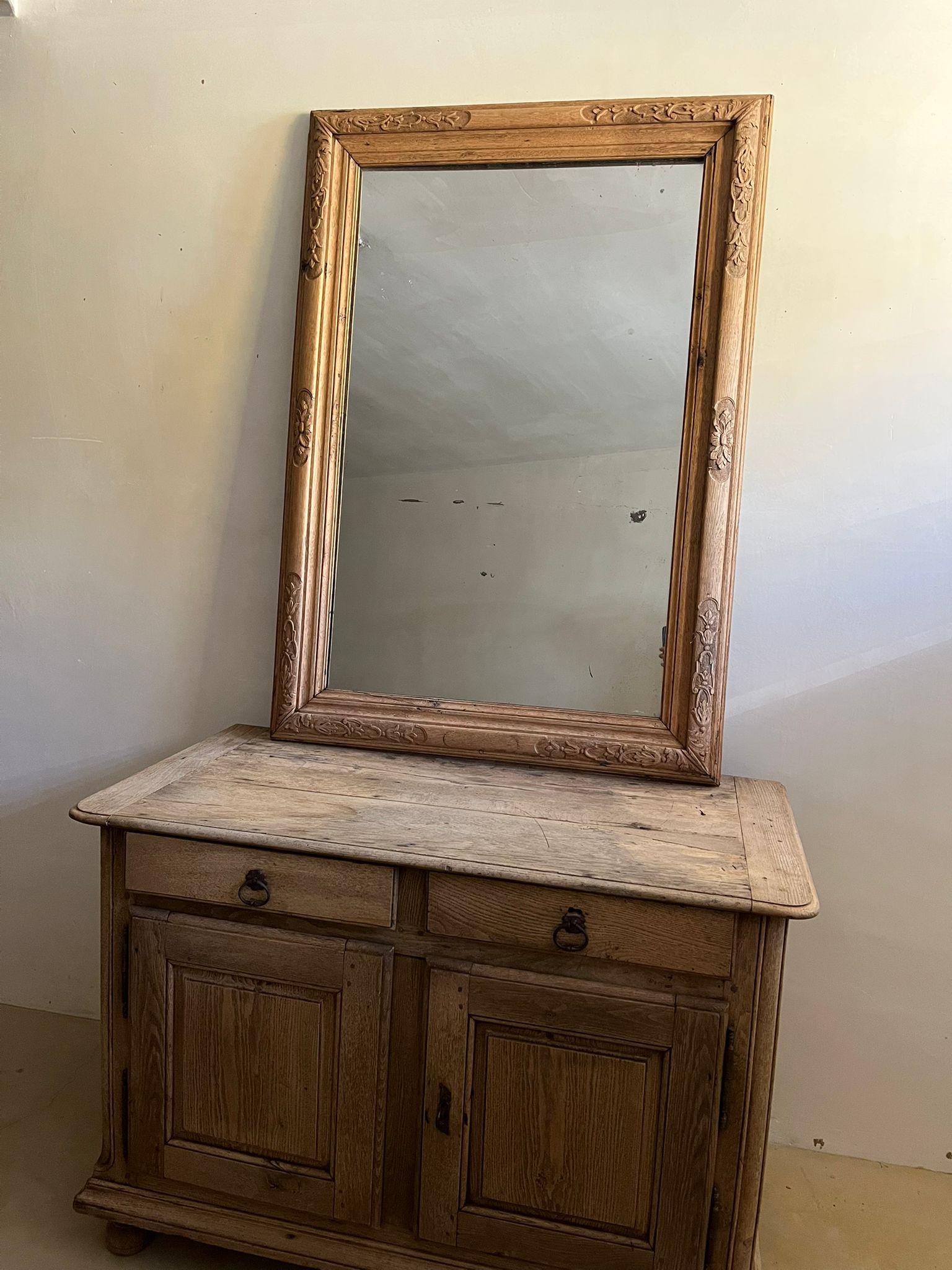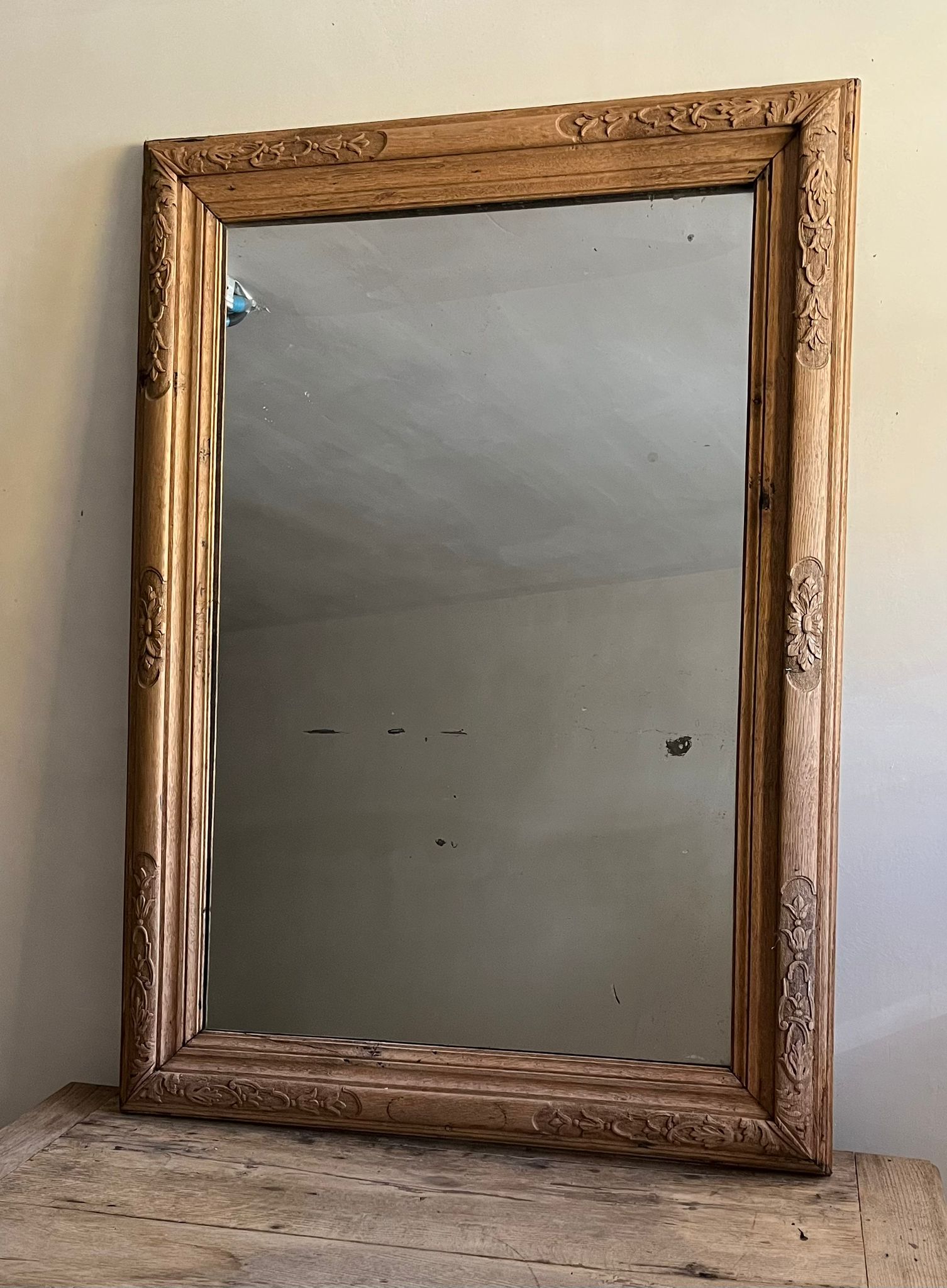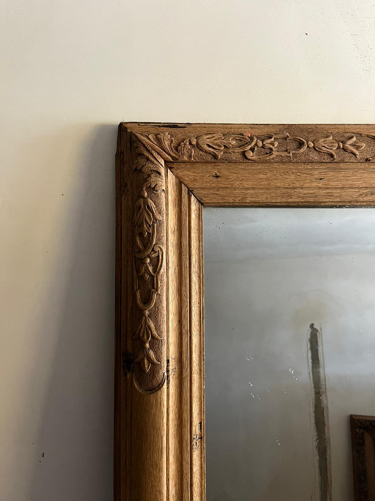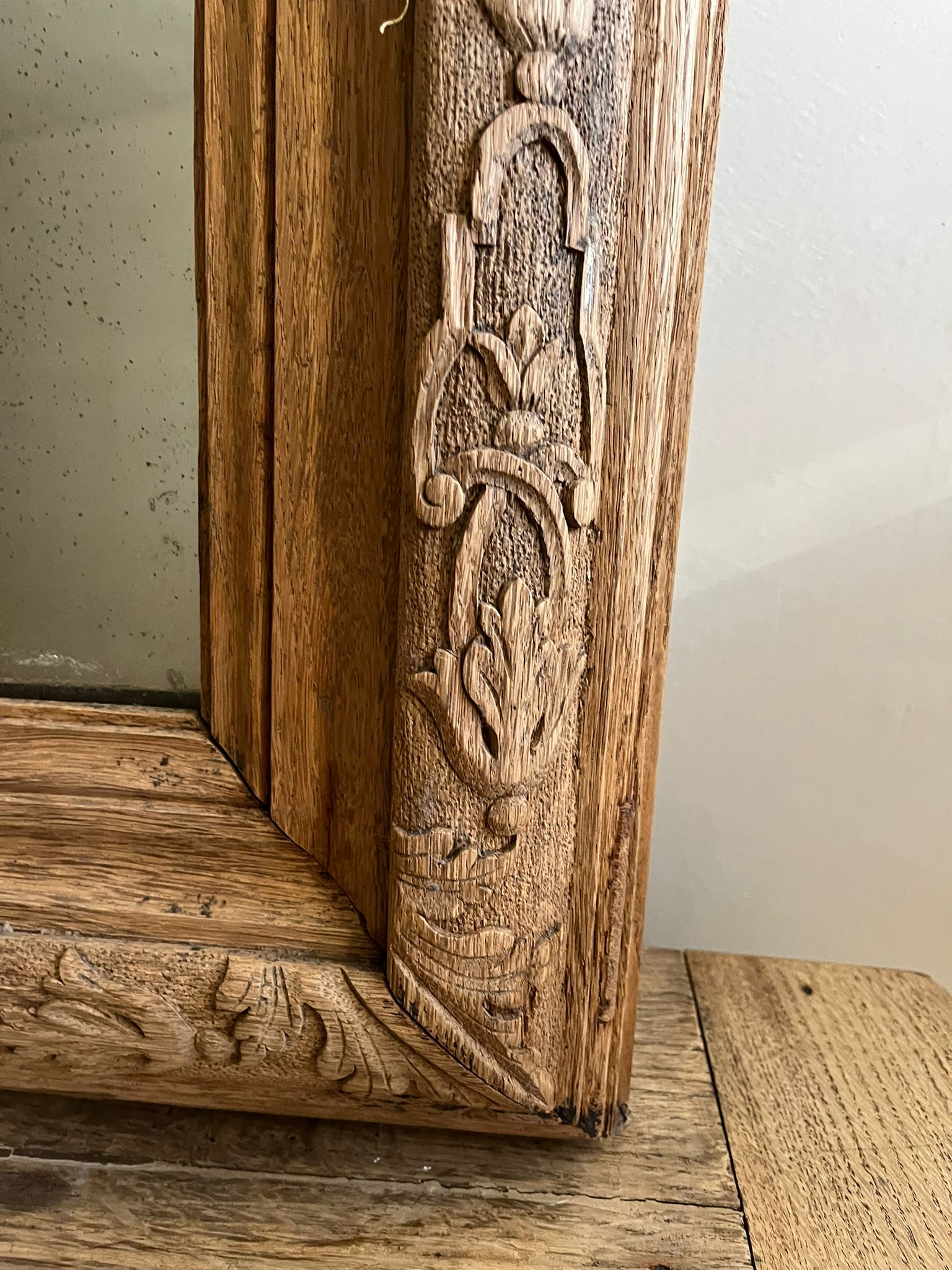 Antiguo espejo realizado en roble macizo natural, finamente tallado a mano, datado del siglo XIX.